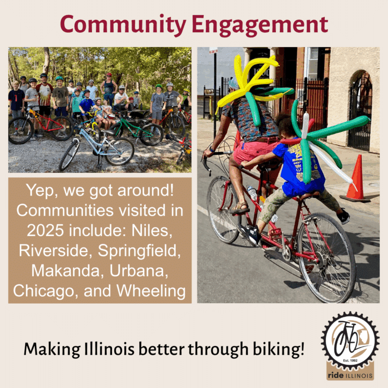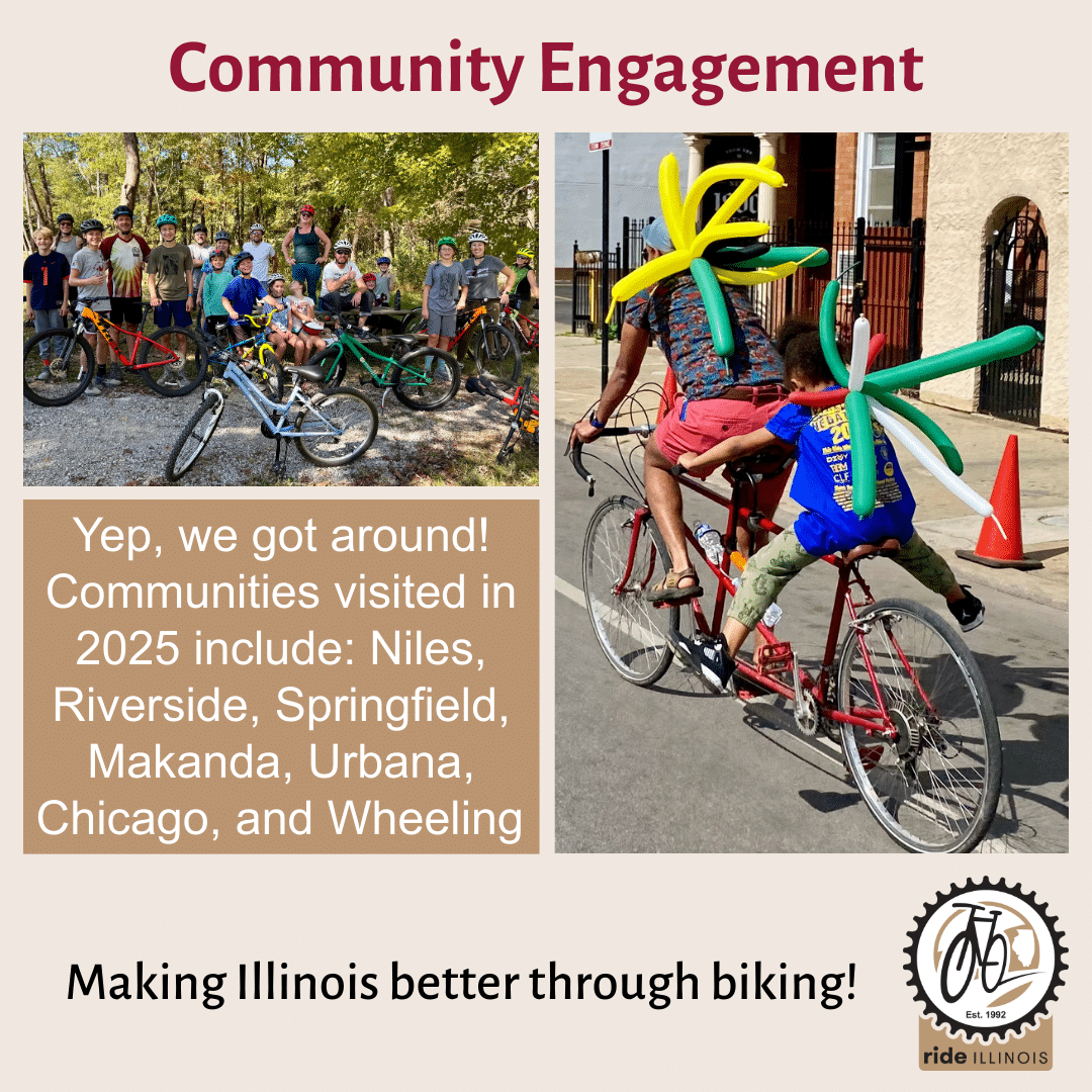A since thank you to all who support Ride Illinois and our mission to make Illinois better through biking. Together, we are Ride Illinois! Please help us by sharing info about Illinois’ nonprofit bike advocacy organization far and wide. Best wishes for 2026 ☺️.